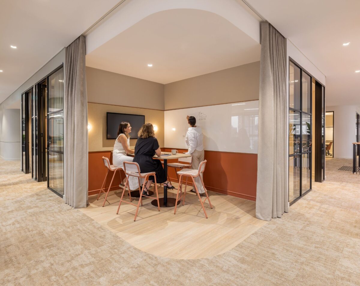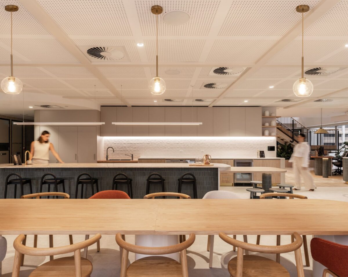 The project included an initial defit off the existing fitout to provide a blank canvas for construction to begin. Built over two expansive levels, the Cromwell workspace exudes comfort, timelessness and elegance with connection and collaboration at the forefront of the design. Throughout the fitout, shared spaces and private work zones promote community, enhance wellbeing and provide integrated learning experiences for employees.